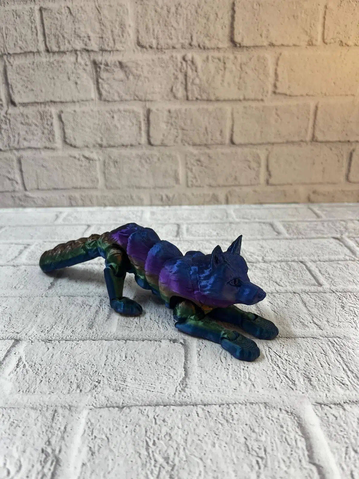 Bu hareketli kurt figürü, rengarenk gövde yapısı ve detaylı yüz çizgileriyle görsel olarak oldukça etkileyicidir. Ayarlanabilir eklemleri sayesinde ister oturur, ister yürür, ister bekleme pozisyonu gibi farklı şekillere getirilebilir. 10×24 cm boyutu dekoratif kullanım için ideal olup fazla yer kaplamaz. Rainbow renk paleti modern dekorasyon tarzlarıyla uyumlu şekilde tasarlanmıştır. Çocuklar için eğlenceli, yetişkinler için koleksiyon değeri taşıyan bu figür, ofis ya da ev ortamında masanıza karakter katar. Hafif yapısı sayesinde kolay taşınabilir ve farklı alanlarda kullanılabilir. Hem oyuncak hem dekoratif figür olarak çok yönlü bir üründür.