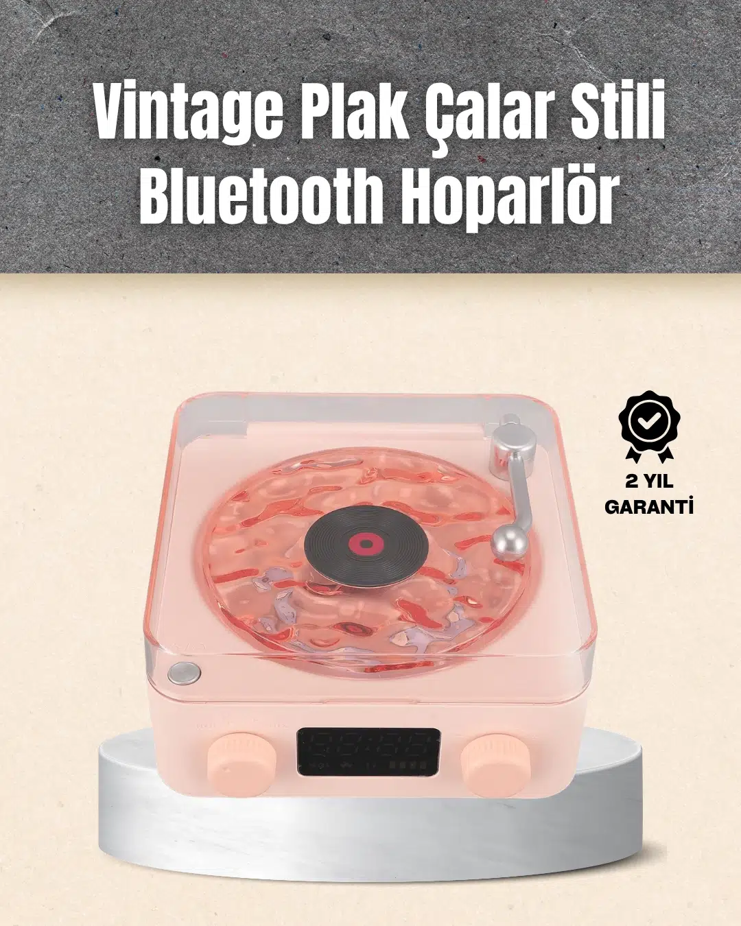 Bu çok yönlü bluetooth hoparlör, mükemmel bir gece lambası ve dijital saat işleviyle birleştirilmiştir. Şeffaf su dalgası aydınlatması, gece boyunca rahatlatıcı bir atmosfer sunar. Kristal netliğinde stereo ses kalitesi, yüksek ses seviyesi ve zengin baslarla müziği doyumsuz hale getirir. Retro plak çalar tasarımı, klasik zarafeti modern çizgilerle buluşturur. Kompakt boyutu sayesinde başucu masalarında veya ofislerde şık bir tamamlayıcıdır.