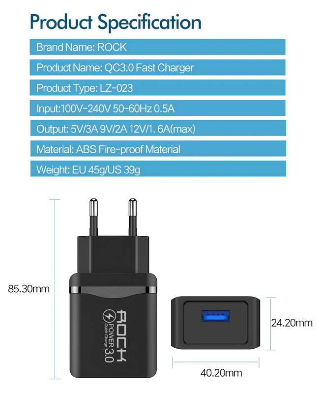 Rock 18W Q.C. 3.0 Hızlı Şarj Cihazı
