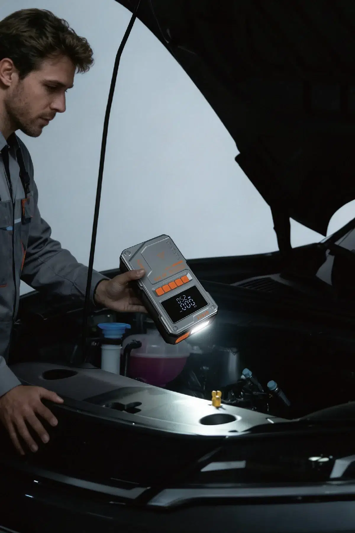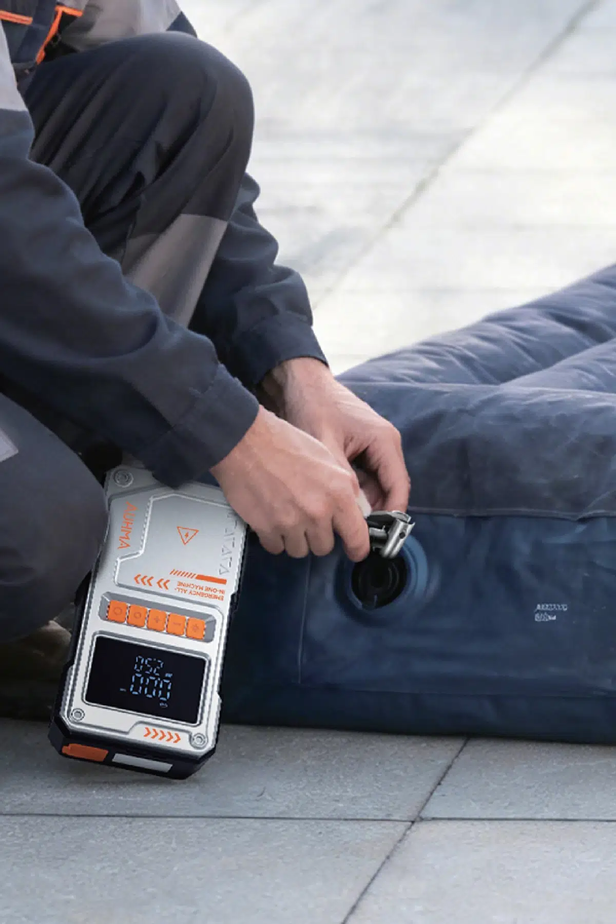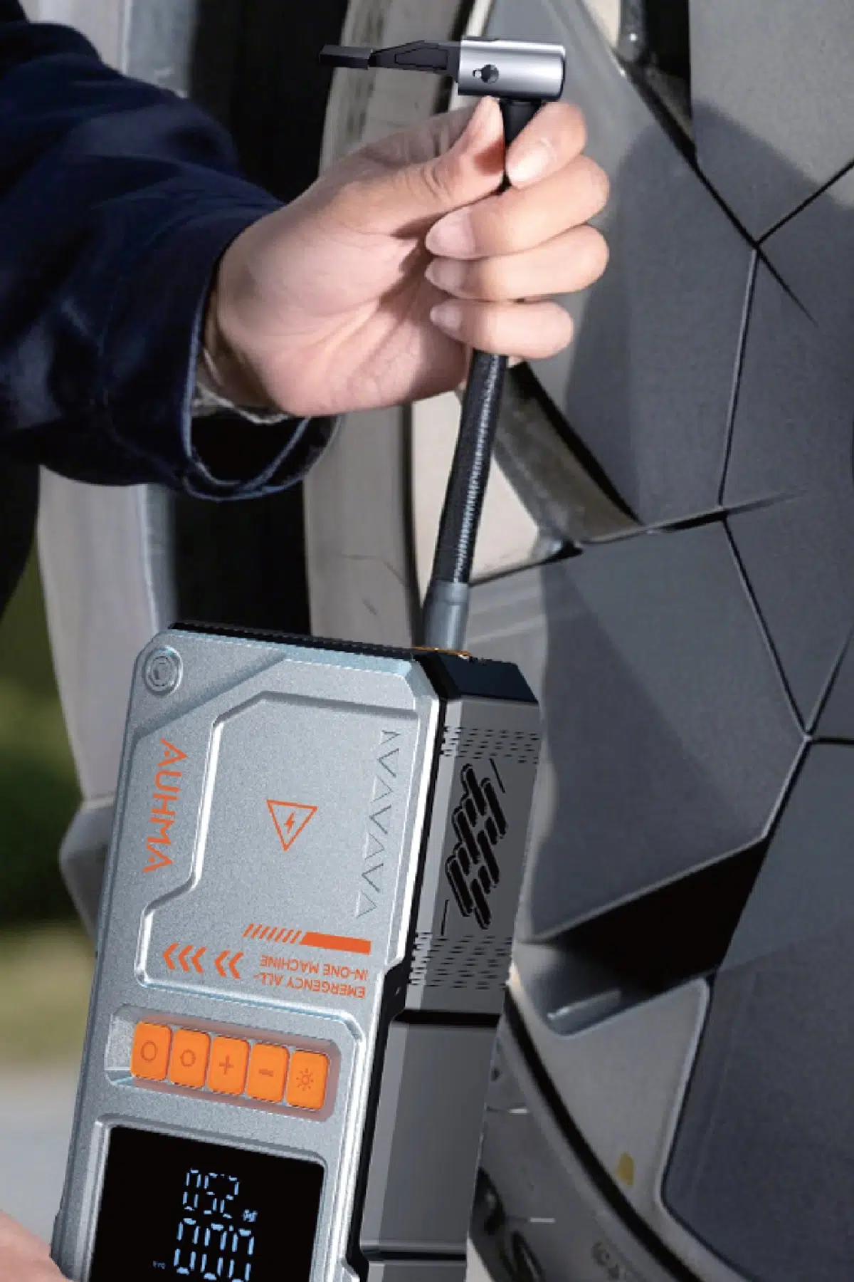 4'ü 1 Arada Jump Starter / Akü Takviye Cihazı! Yolda kaldığınızda ihtiyacınız olan her şey tek cihazda: akü takviyesi, lastik şişirme, mobil şarj, ve LED aydınlatma.