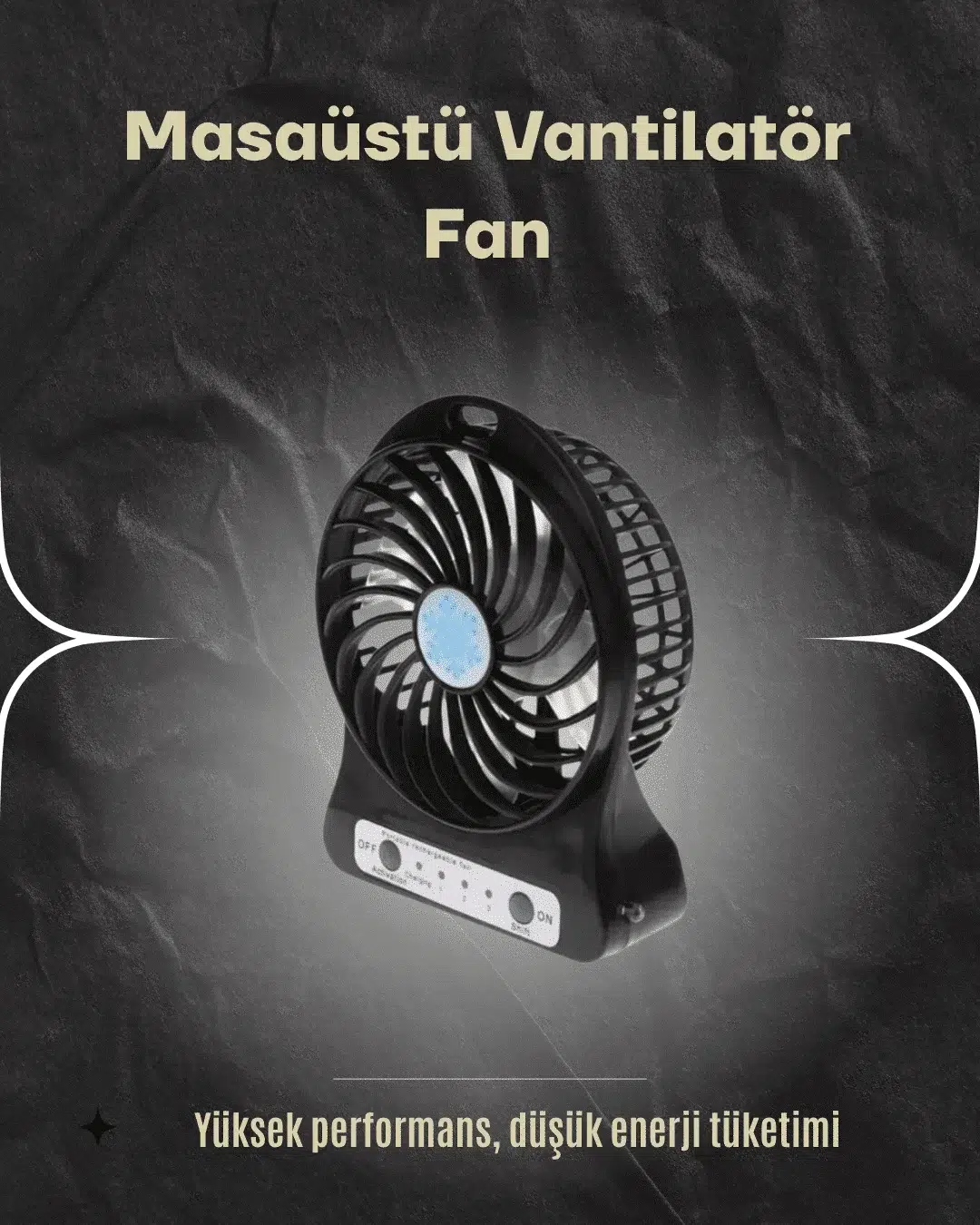 Şarjlı Usb Fan – Masaüstü Mini Vantilatör, Taşınabilir, Işıklı, 3 Kademeli, Sessiz