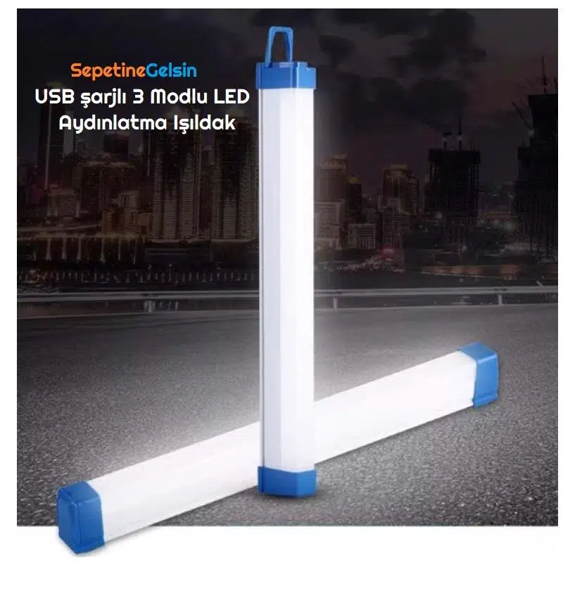 1 Adet Sepetinegelsin USB şarjlı 3 Modlu LED aydınlatma ışıldak
