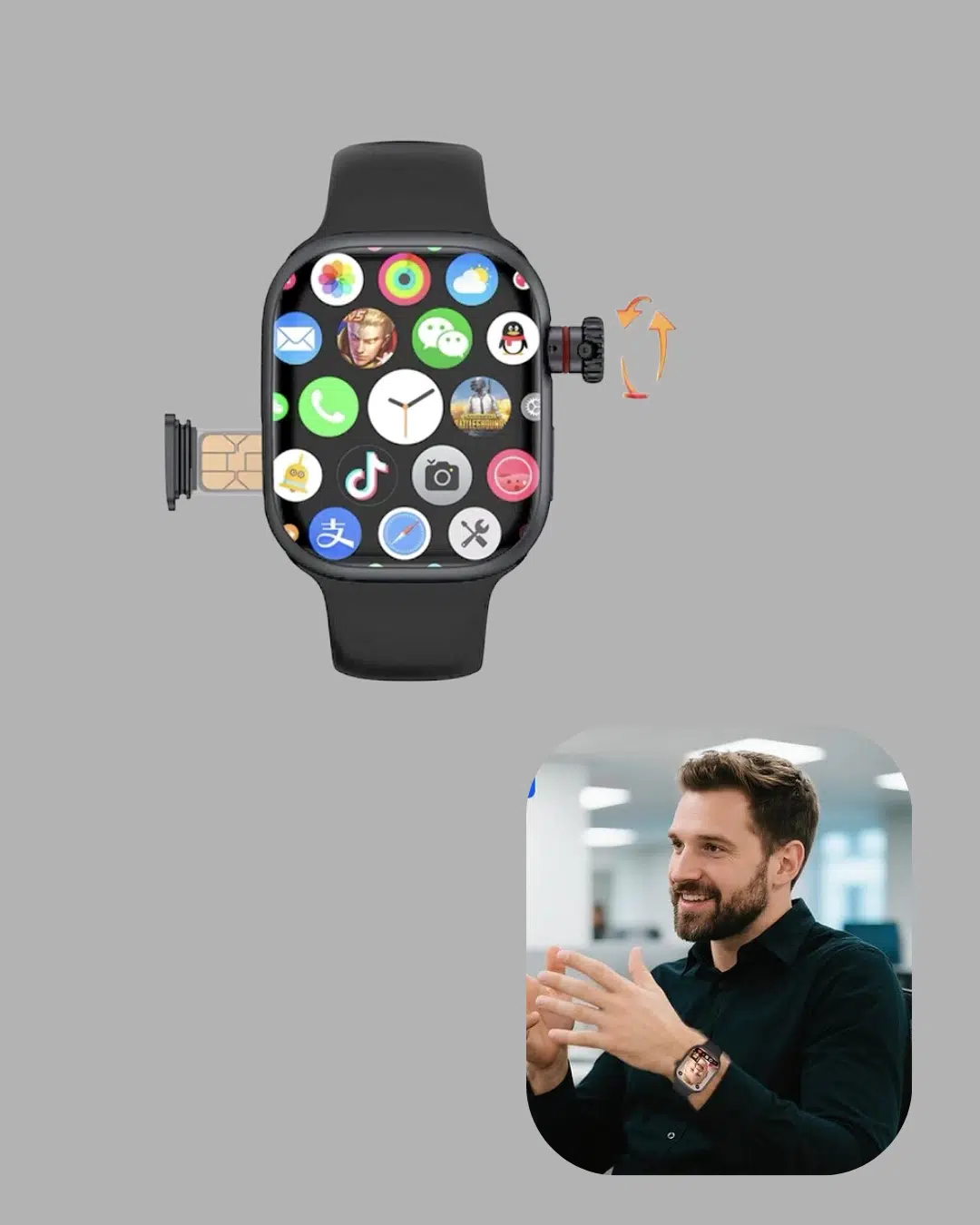 Sesli Arama Özellikli Sım Kartlı Siyah Akıllı Saat