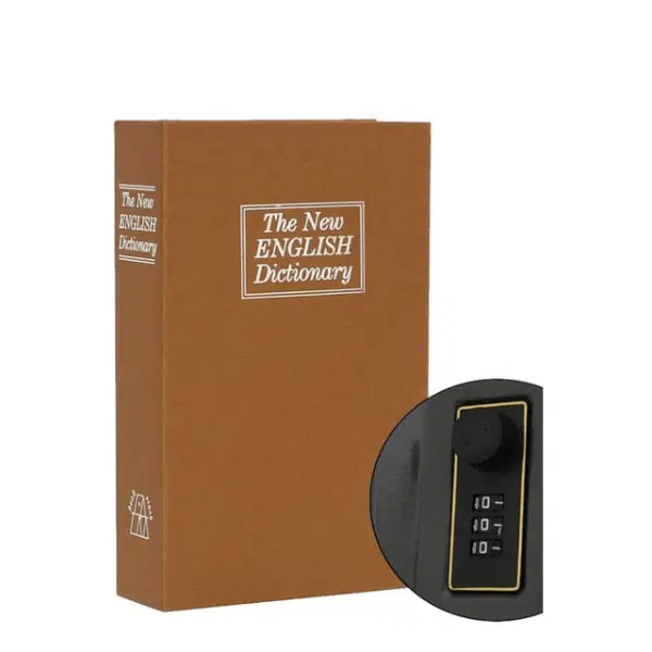 ŞİFRELİ KİTAP KASA Ürün Özellikleri Şifreli kitap kasa, gerçek kitap görünümünde tasarlanmış güvenli bir saklama kutusudur. Dış kısmı “The New English Dictionary” yazılı kapakla kaplanmıştır ve kitaplıkta sıradan bir kitap gibi durarak dikkat çekmez. İç kısmında çelik kasa bölmesi bulunur ve 3 haneli şifreleme sistemiyle korunur. Değerli eşyalarınızı, nakit paranızı, takılarınızı ve belgelerinizi güvenle saklamak için idealdir. Hem ev hem de ofis kullanımı için uygundur. Kompakt boyutları sayesinde kolay taşınabilir ve gizlenebilir. Paket İçeriği 1 adet Şifreli Kitap Kasa