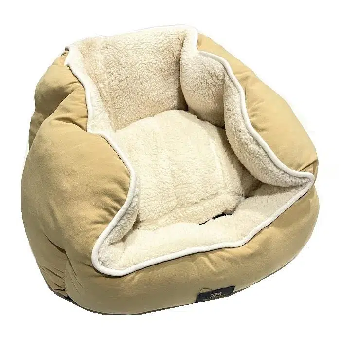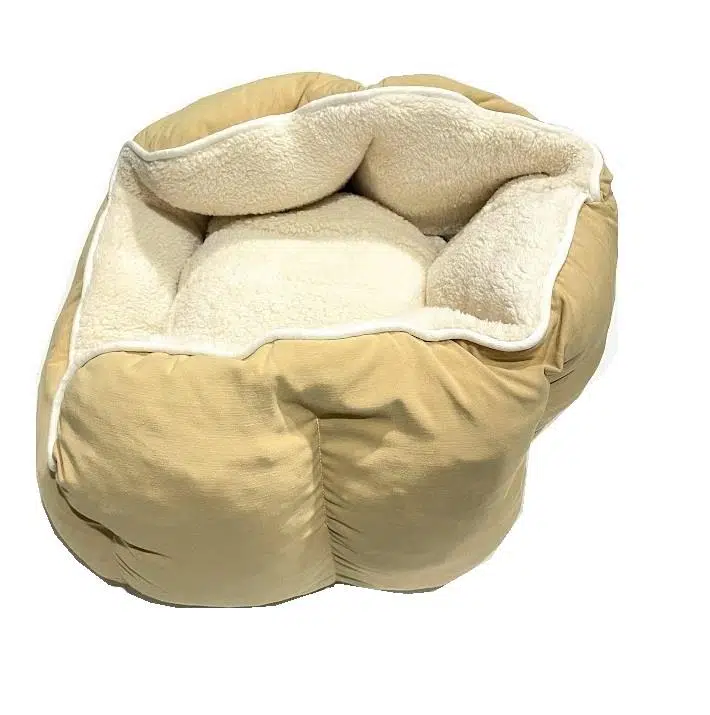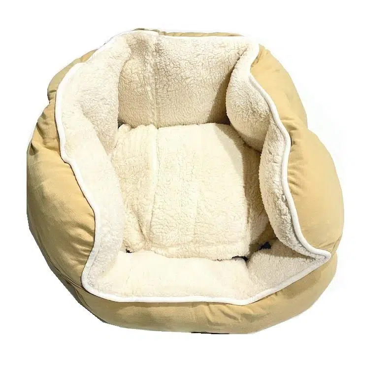 Süslüpati Kullanışlı Yıkanabilir Kumaş Silikon Elyaf Dolgulu Kedi Köpek Yatağı Kahve Krem 56Cm