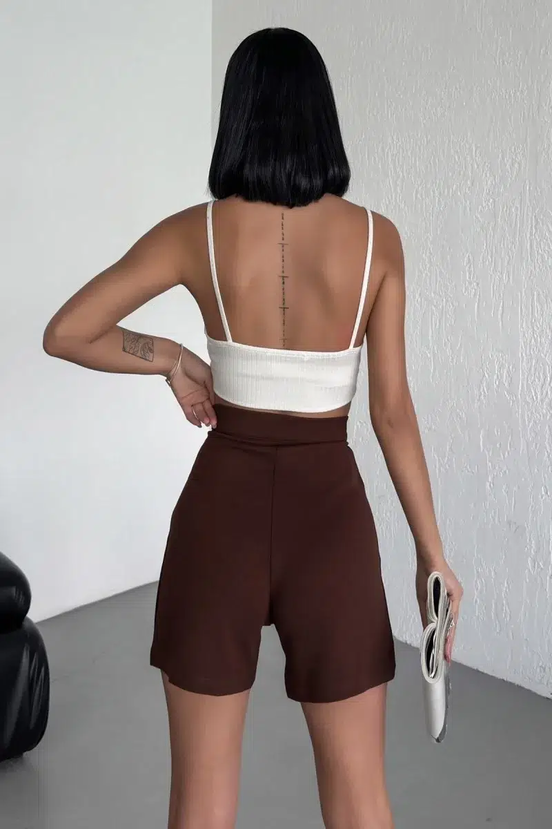 Tarz ve Rahatlığı Bir Arada Sunan Yüksek Bel Esnek Likralı Krep Şort Kahverengi