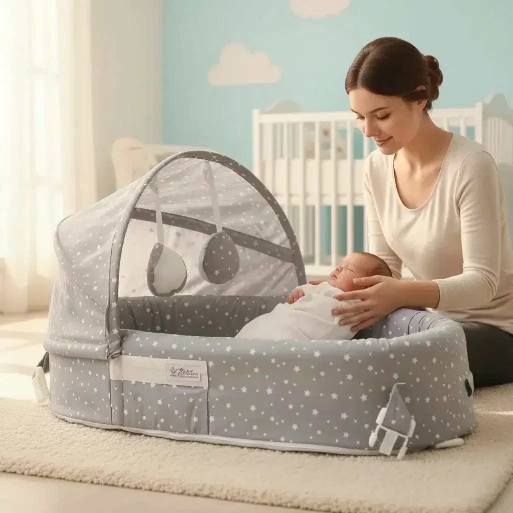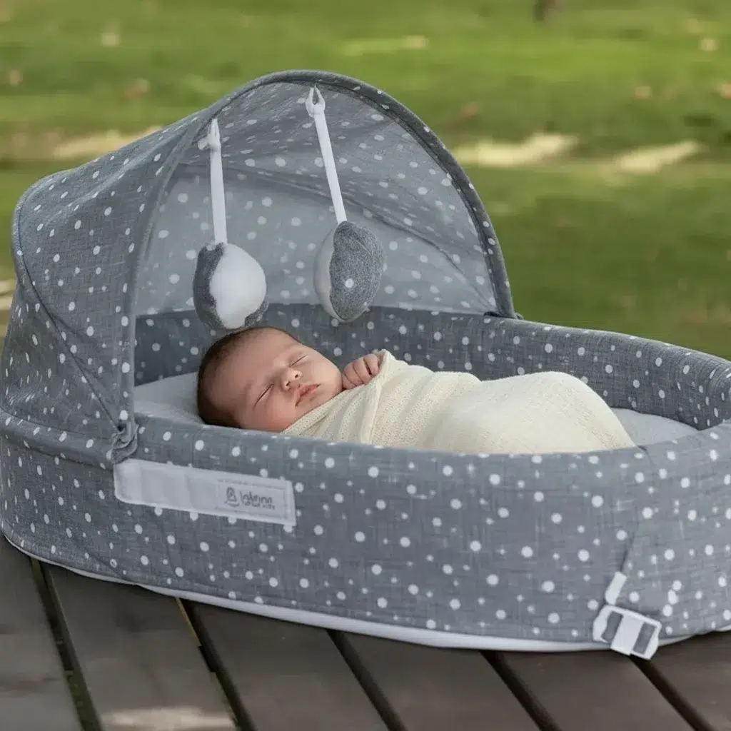 Taşınabilir Portatif Bebek Yatağı,Sırt Çantasına Dönüşebilen Portatif Bebek Beşiği (Gri)