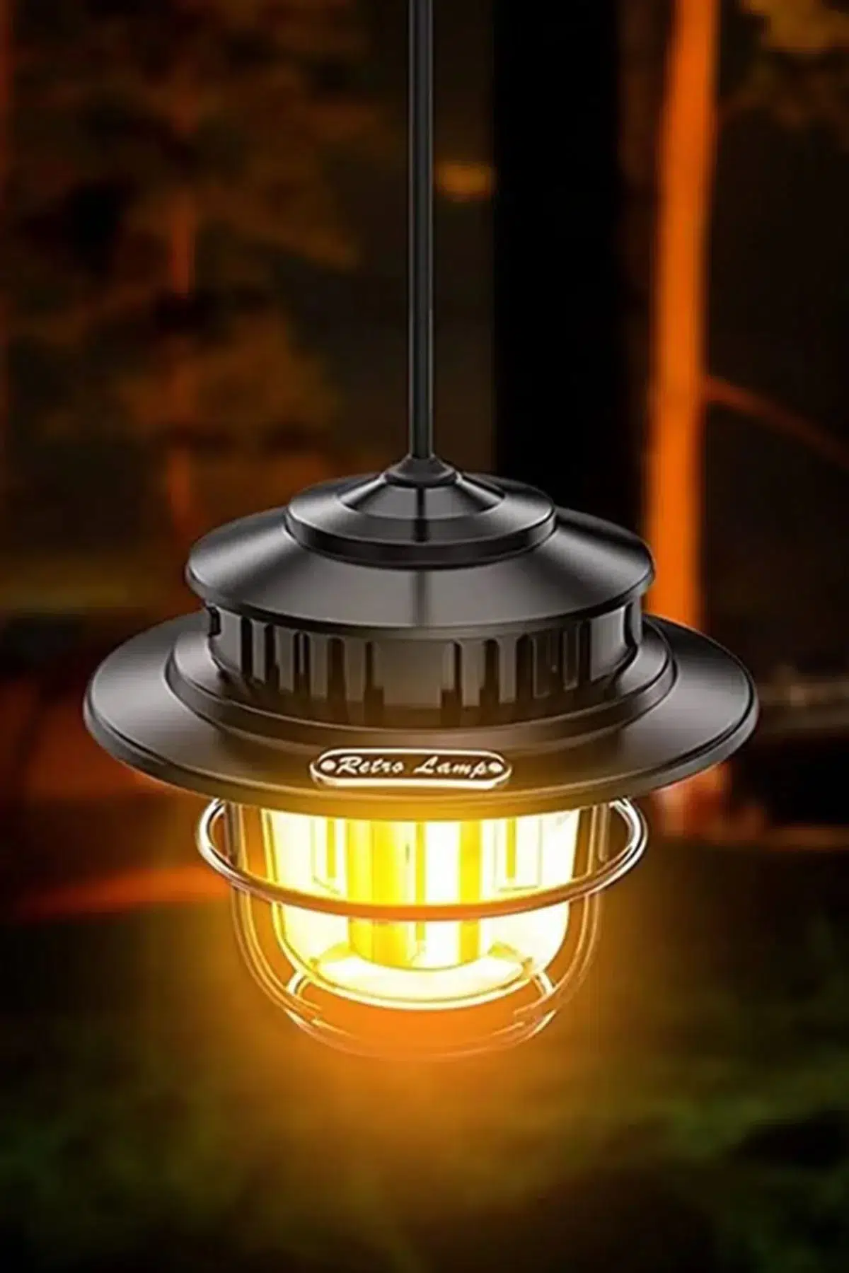 Taşınabilir Retro Fener Su Geçirmez Dış Mekan Güçlü Led Kamp Bahçe Feneri Dekor