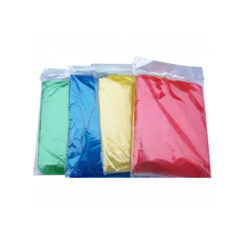 TEK KULLANIMLIK KULLAN AT YAĞMURLUKTek Kullanımlık Kullan At Yağmurluk, kapüşonlu ve çıtçıtlı olup, standart boylardadır, bayan ve erkek kullanımı için uygundur.Biz, Tek Kullanımlık Kullan At Yağmurluk desek de,ürün üzerinizden çıkarttığınızda hemen deforme olacak yapıda değildir.Örneğin; miting, konser ya da maçtasınız, yağmurlu ve serin havadan indoor bir alana geçtiniz, Tek Kullanımlık Kullan At Yağmurluğu üzerinizden çıkartıp, en minimal haline gelene kadar katlayın, cebinize koyun, çıkarın ve tekrar giyin.Kolay taşınabilir ve Tek Kullanımlık Kullan At yağmurluk olması ve pratikliği sayesinde ani bastıran yağmurlara karşı hazırlıksız yakalanmayacaksınız, çantanızda ya da pantolonunuzun arka cebinde kolaylıkla taşıyabilirsiniz.Tek Kullanımlık Kullan At Yağmurluk, mitinglerde, konserlerde, outdoor aktivitelerinde kullanıma uygundur.Kullan At Tek Kullanımlık Yağmurluk, muhtelif renklerde olup, ince yapısı sebebiyle şeffaf yağmurluk olarak da bilinir, lakin içindeki poliüretan sebebi ile esneklik kabiliyeti yüksek olan bir üründür. Tek Kullanımlık Kullan At Yağmurluk, standart boy olup, yetişkin bütün bireyler için kullanıma uygundur.Ucuz, Uygun Fiyatıyla, Pratik Kullanımı İle Tek Kullanımlık Kullan At Yağmurluk !Yağmur, kar ve rüzgar gibi dış etkenlerden korunmanın en pratik ve ekonomik yolu !Tek Kullanımlık Kullan At Yağmurlukların her biri kendine özel paketi içindedir ve özel paketindeki yağmurluklar beşer adetli lotlar halinde birbirine bağlıdır.Ürünler size ulaştığında, kolaylıkla dağıtılabilecek ya da satışa hazır haldedir, fabrikasyon paketleme olduğundan asla dağınık olarak gelmez, kolayca istiflenebilir ve sayılabilir.Yağmurluklar, 500 adetten oluşan fabrikasyon çuvalların içerisindedir.Her çuval 180 cm. uzunluk ve 120 cm. ene sahiptir.Her yağmurluk, ısı ile yapıştırılan fabrikasyon poşetin içinde olduğundan, yağmurlukların üzerine baskı yapılması mümkün değildir, Ancak, her bir yağmurluğun ambalajına baskı yapılması mümkündür.1500 adet altında verilen siparişlere indirim uygulanmaz.Türkiye'nin Bütün Şehirlerine, Ambar İle Çok Uygun Fiyatlarla Gönderim Sağlayabiliyoruz!Acil Yetişmesi Gereken Ürünleriniz İçin Çözüm Sunuyoruz!  Tek Kullanımlık Kullan At Yağmurluk Ürün ÖzellikleriDört adet çıtçıtlı.Kapüşonlu. Renkler: Kırmızı, Beyaz, Mavi, Pembe. Tek Kullanımlık Kullan At Yağmurluk Ürün ÖlçüleriAçık Hali Uzunluk 150 cm.Genişlik 140 cm.  ( kollar açık ) Kapalı HaliGenişlik 9 cm.Yükseklik 13 cm. Tek Kullanımlık Kullan At Yağmurluk Paket İçeriğiBir adet özel paketinde, kapüşonlu, çıtçıtlı standart boy yağmurluk Not: Renk tercihlerinizi belirtmediğiniz siparişlerinizde, ürünler stok durumuna göre karışık renklerde gönderilecektir. DİKKAT ! Piyasada satılan, daha üzerinize giyerken yırtılan 1 TL tutarındaki ürünlerden değildir!