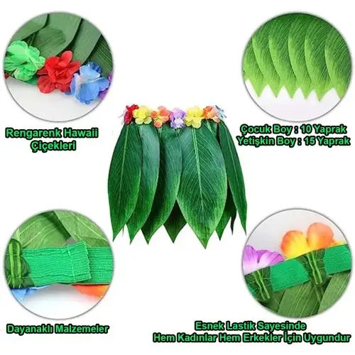 TROPİKAL ESİNTİLİ YAPRAKLI PARTİ ETEĞİ ÇOCUK BOYÜrün ÖzellikleriTropikal esintili yapraklı parti eteği, çocuklar için özel olarak tasarlanmış renkli ve eğlenceli bir kostüm aksesuarıdır. Yumuşak ve rahat malzemeden üretilen bu etek, yaz partileri, kostüm etkinlikleri ve temalı doğum günü partileri için idealdir. Canlı yeşil yaprak detaylarıyla dikkat çeker ve çocuklara tropikal bir hava katar. Çocuk boyutunda olan bu etek, hareket özgürlüğü sunarak, her yaştan küçüklerin rahatça eğlenmesini sağlar.Paket İçeriği1 Adet Tropikal Esintili Yapraklı Parti Eteği Çocuk Boy