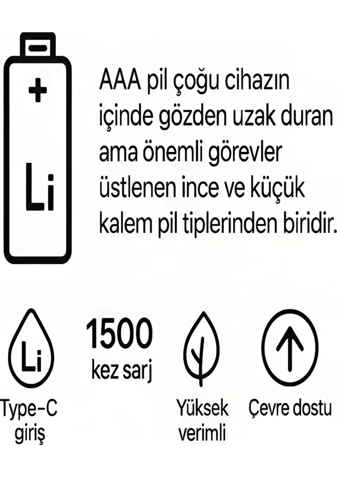 Type-c Şarjlı 800mwh 1.5v Şarj Edilebilir 2’li Aaa İnce Pil - Lityum Iyon Batarya