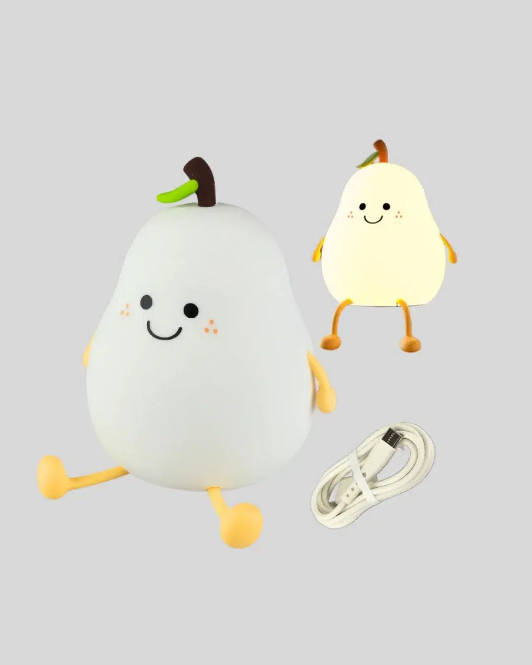 Bu armut gece lambası, ayarlanabilir LED ışığı ile kullanıcıya özel aydınlatma sunar. Loş ışık modu uyku öncesi rahatlama sağlarken, daha parlak mod masa lambası olarak kullanıma uygundur. Renk sıcaklığı yumuşak sarıdan beyaza kadar değiştirilebilir. Şarj edilebilir yapısı sayesinde kablo ihtiyacını ortadan kaldırır. Dayanıklı vinyl materyali uzun süreli kullanım sunar. Enerji tasarruflu yapısı ile çevre dostudur.