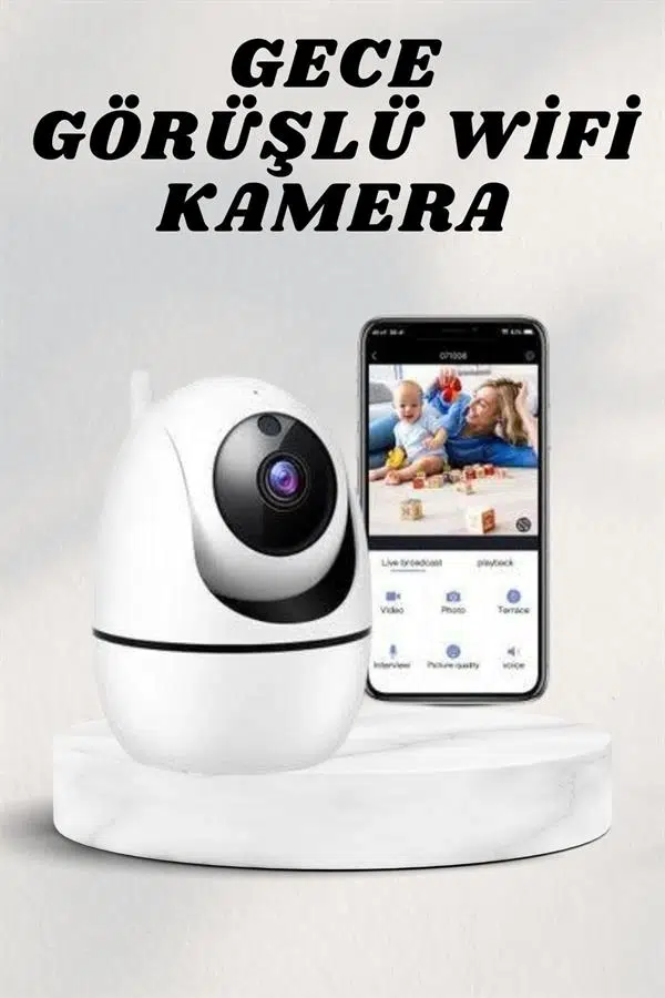 Kamera, 360 derece dönebilme ve 90 derece baş hareketi yapabilme özelliğiyle geniş bir alanı kapsayarak panoramik yatay ve dikey çekimler gerçekleştirir. Gece görüşü sayesinde düşük ışık koşullarında bile net görüntüler sunarak kesintisiz güvenlik sağlar. Kaydedilen görüntüler MicroSD hafıza kartına depolanabilir ve kullanıcı dilediğinde eski kayıtları inceleyebilir.