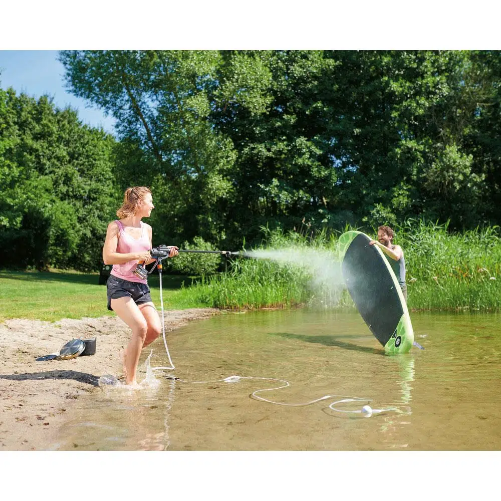 ·Tabanca üzerindeki güçlü motor ve piston mekanizması ile şebeke suyundan, havuzdan, akarsudan, kovadan ve hatta pet şişeden 1,5m yüksekliğe kadar otomatik olarak direk emiş yaparak 24 Bar’a kadar basınç sağlayarak Araba, Motosiklet, Bisiklet, ATV, Karavan veya bahçe aletlerinizi, masa ve sandalyelerinizi, veranda gibi yüzeyleri basınçlı tazyik oluşturarak temizlemenizi sağlar.