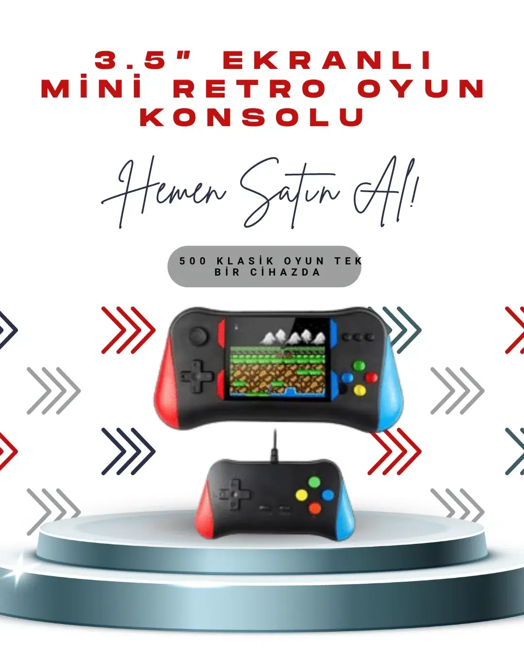 X7m Vintage 3.5 İnç 500’ü 1 Arada Klasik Oyun Konsolu