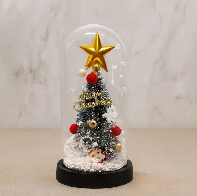 Yılbaşı Temalı Işıklı Dekoratif Cam Fanus Alk5082 Ürün Ölçüleri 21*11 Cm