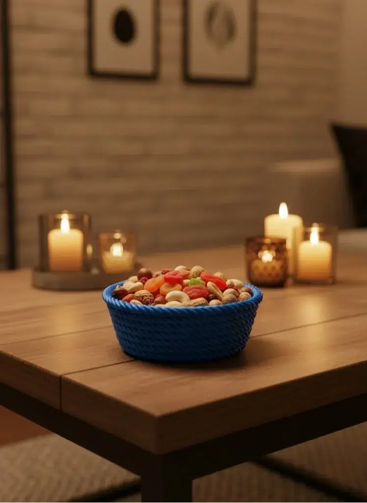 Yuvarlak Çerezlik Lacivert 4×12 cm ölçüsüyle küçük ama işlevsel bir sunum çözümü sunar. Salon sehpaları, masa üstleri ve raf dekorasyonlarında hem dekoratif hem de kullanışlı bir ürün olarak öne çıkar. Lacivert rengi, sıcak ve loş salon aydınlatmalarıyla birleştiğinde şık bir atmosfer oluşturur.Örgü formu sayesinde sade bir kase görünümünden farklı olarak dekoratif bir etki yaratır. Günlük kullanım için pratik olduğu kadar misafir ağırlarken de es bir sunum imkânı sağlar. Çerez, kuru yemiş, draje, çikolata ve küçük atıştırmalıklar için uygundur.Minimal boyutu sayesinde kalabalık görüntü oluşturmaz ve masa düzenini bozmadan kullanılır. Salon, mutfak ve ofis ortamlarında rahatlıkla tercih edilebilir. Dekorasyonuna küçük ama etkili dokunuşlar eklemek isteyenler için ideal bir tamamlayıcı üründür.