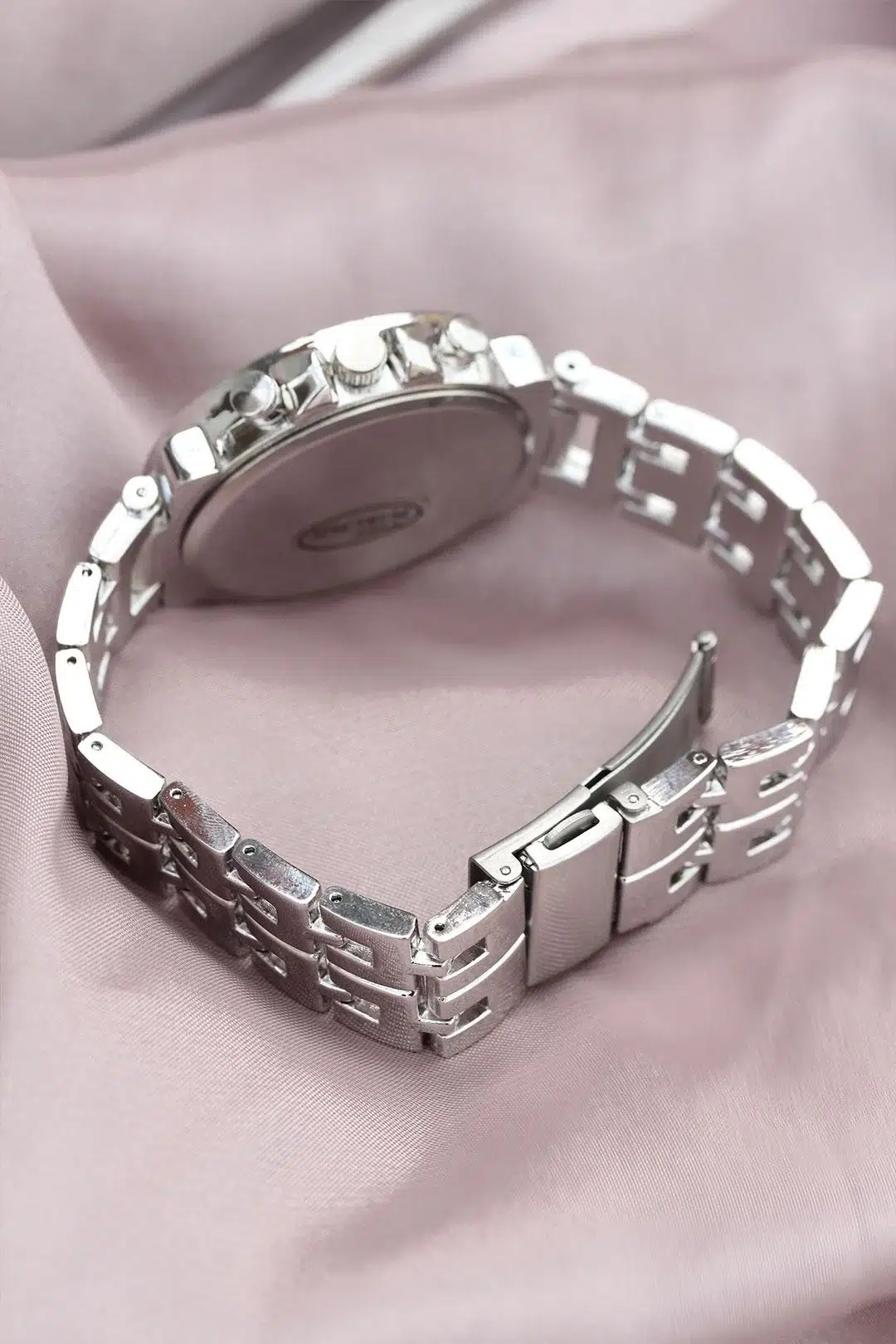 3. Zirkon Taşlar: Saatin kadranı üzerinde bulunan zirkon taşlar, parıltılı ve şık bir detay ekler. Bu taşlar, saatin her açıdan dikkat çekici olmasını sağlar.