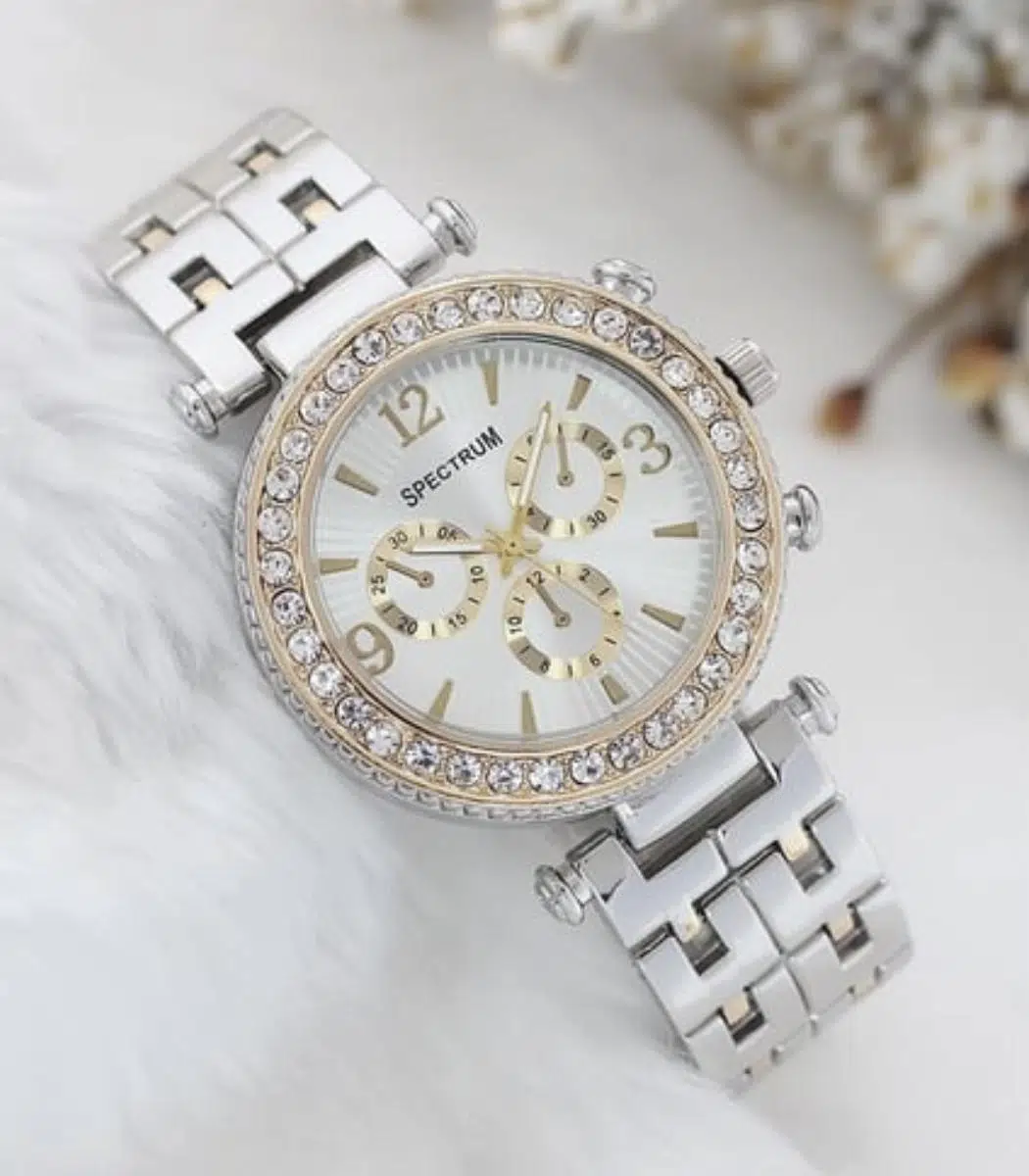 Zarif Ve Şık Özel Tasarım Zirkon Taşlı Metal Bayan Kol Saati (gümüş-gold)