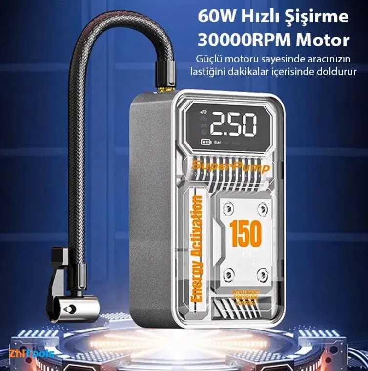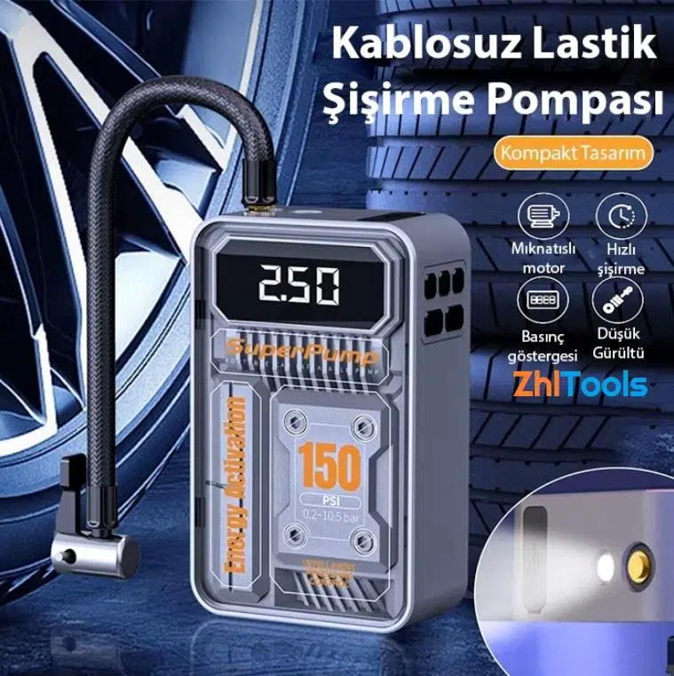 Zhltools 150psi Taşınabilir Araba yüksek güçlü elektrikli kablosuz lastik hava pompası