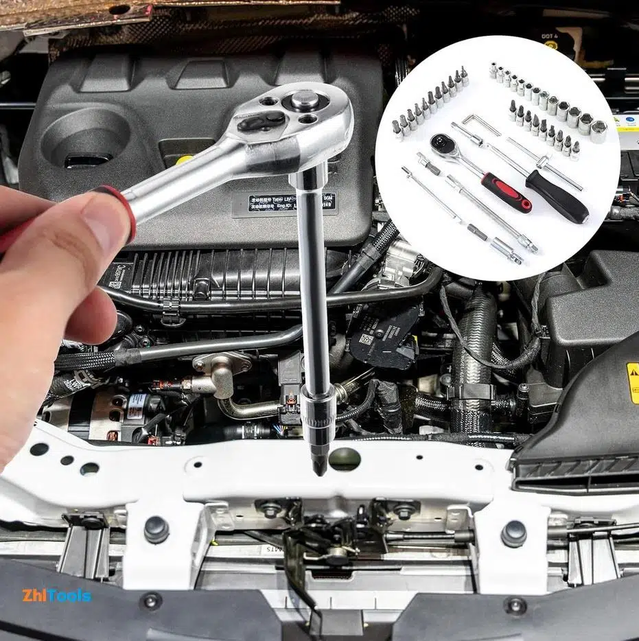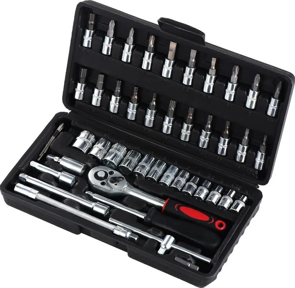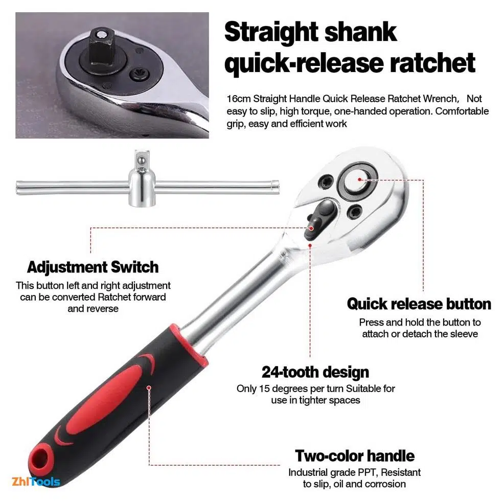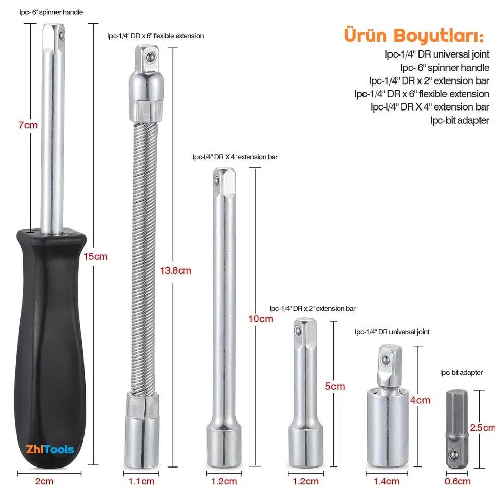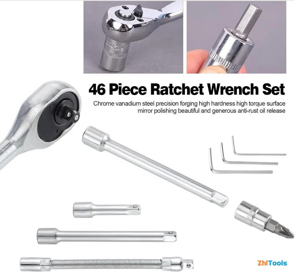 ZHLTOOLS 46 Parça Soket Seti, 1/4 inç Tahrik Cırcır Soket Anahtarı Sürücü Uçları Metrik Set