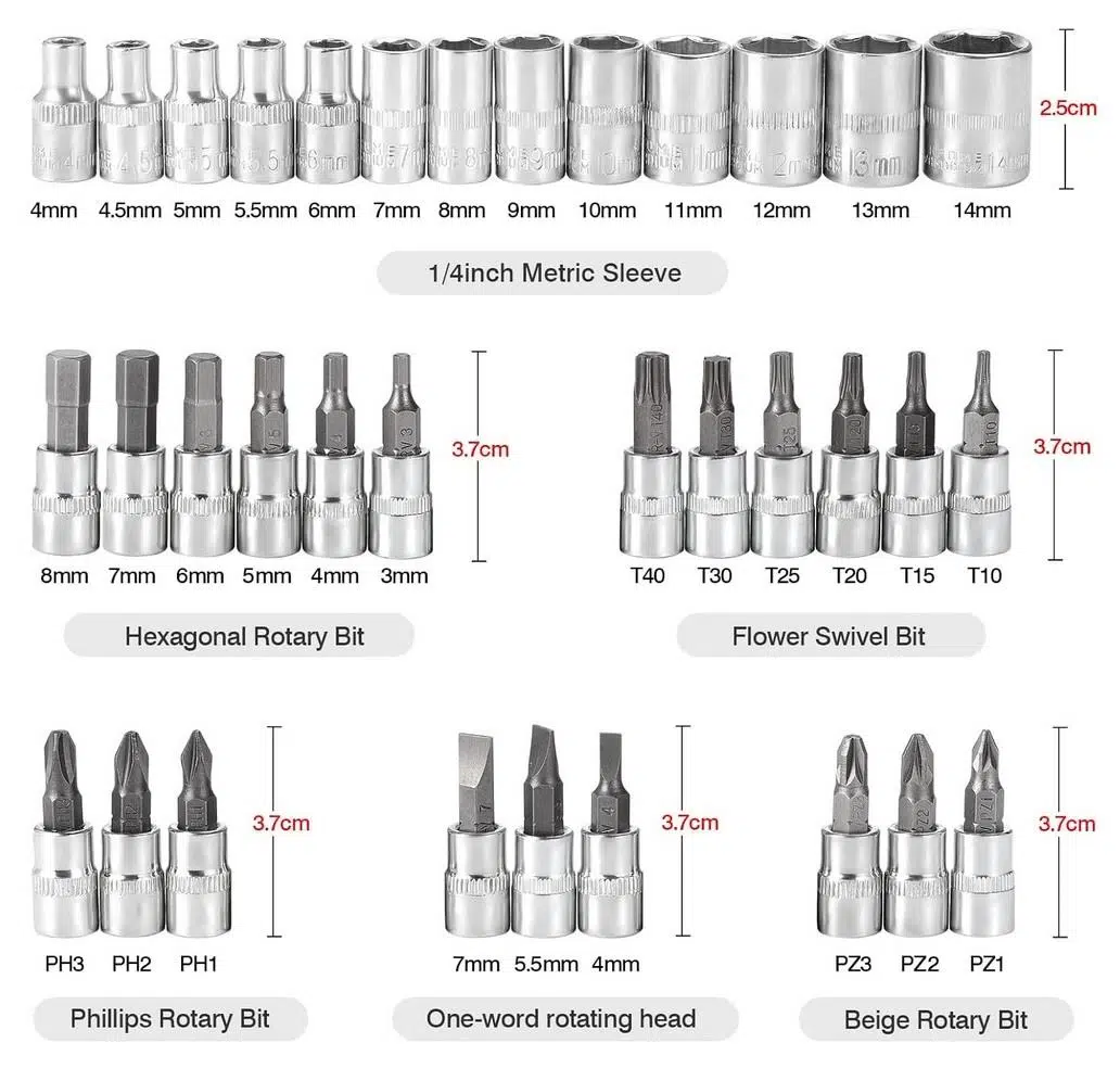 【Çok fonksiyonlu】Soket seti otomotiv, mekanik, motosiklet onarabilir, bu arada ev bakımı için de uygundur.