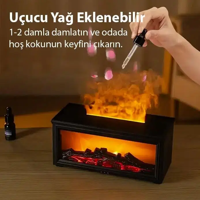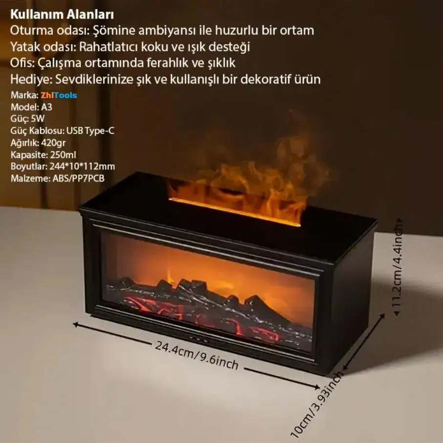Ev dekorasyonunuza estetik bir şömine ambiyansı katarken, aynı zamanda ortamın havasını tazeleyen ve hoş koku yayan çok fonksiyonlu bir aromaterapi cihazı.