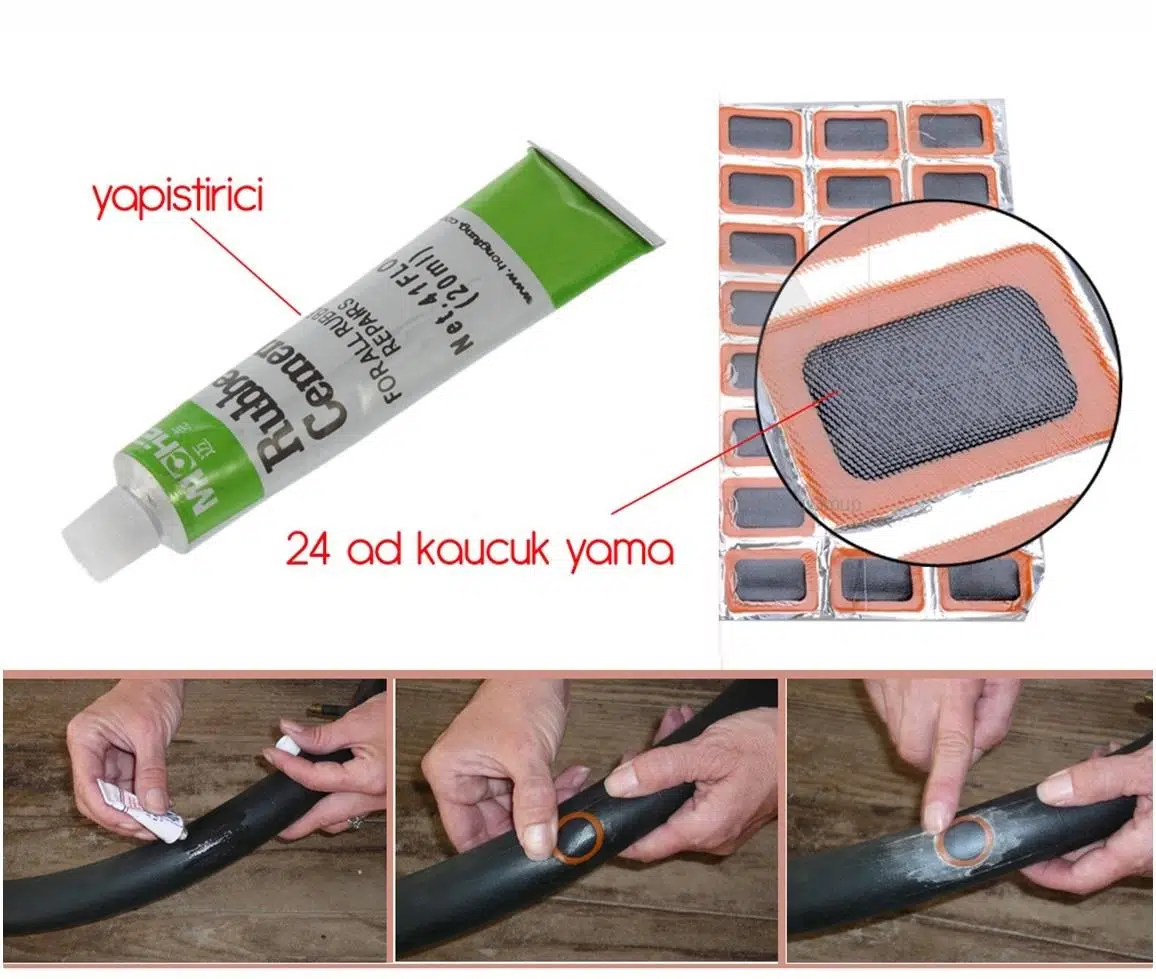 EŞİ GÖRÜLMEMİŞ YAMA KİTİ : Büyük ve küçük iç deliklerle başa çıkması kolay 24 adet kauçuk yama, ister çivi ister keskin cam parçaları ile delinmiş olsun, mükemmel bir onarım için kullanılabilir.